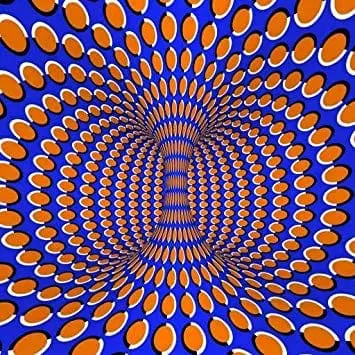 To złudzenie optyczne przypomina nagranie, ale nie to jest zwykłe zdjęcie. Obraz jest naprawdę statyczny. Zauważ, że gdy spojrzysz na wyznaczony punkt, przestanie się on poruszać. To silne złudzenie optyczne powstaje na skutek interakcji kontrastów kolorów i pozycji kształtów na obrazie.
